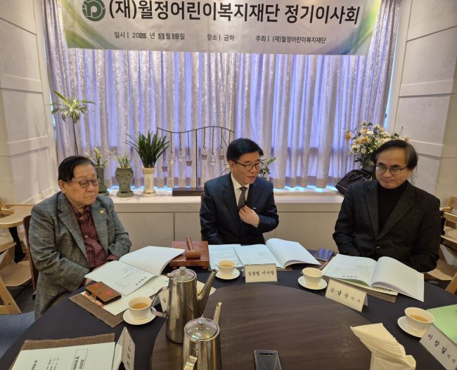 (재)월정어린이복지재단(이사장 김광철)은 11월 19일(수) 중식당 금하에서 2025년 2차 정기 이사회를 개최하였다. 이사회 주요 안건은 2025년 1차 정기 이사회 회의록 보고, 2026년 사업계획(안), 예산(안), 기부금 계획 사용(안) 등으로 진행 되었다. 이사진들은 월정어린이복지재단의 사업을 한 단계 성장시킬 방안에 대해 다양한 의견을 나누었다.