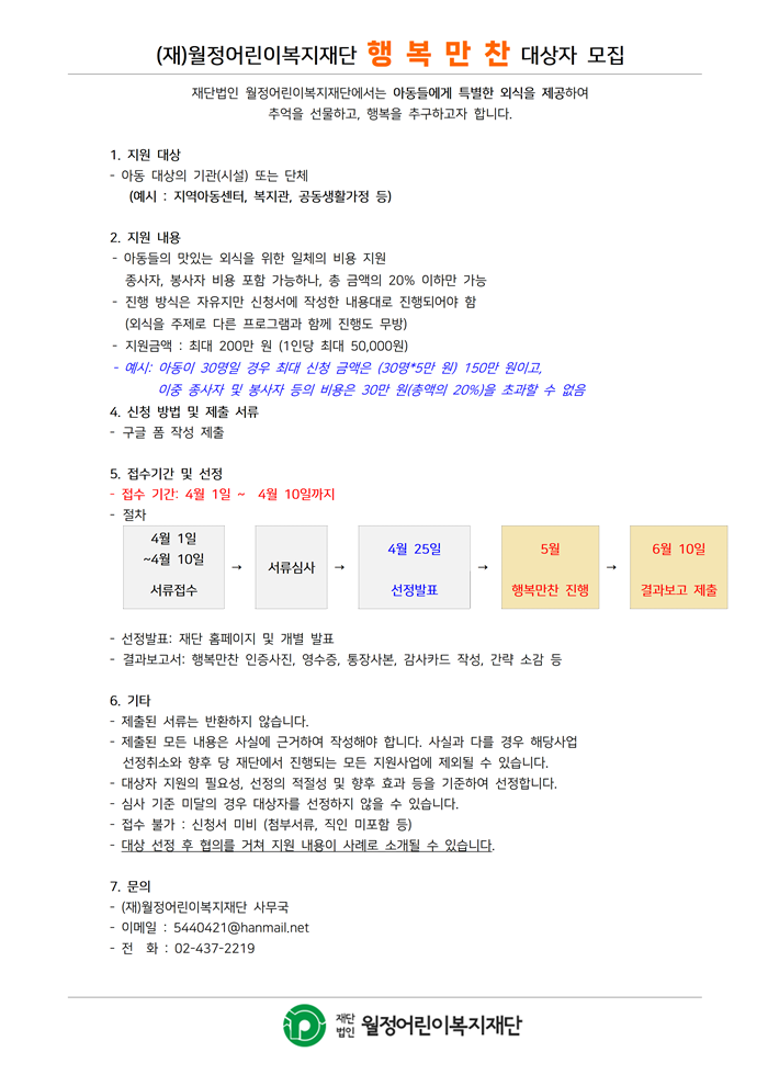 - 행복만찬 지원