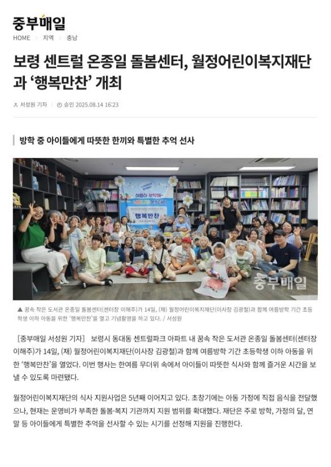 보령 꿈속작은도서관 행복만찬 행사 진행(중부매일 20250814)