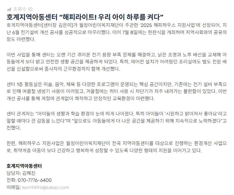 창원 호계지역아동센터 Happy House 현판식 행사 진행(지아센뉴스 20250908)